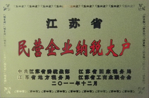 Recently, our company honored a Glorious title” large taxpayer of Jiangsu Private enterprises” issued by National Tax Administration of Jiangsu Province, Local Tax Bureau of Jiangsu Province and other total four government department. |
