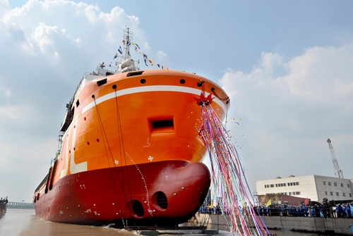 On July 31, 2012, one 84.8m MPAHTSV named “SEALINK 178”, build by Jiangsu Zhenjiang Shipyard Group Co., ltd for Malaysia SEALINK company, has been launched smoothly. At present, this vessel is the China first one which can meet the requirement of ABS on the HAB, ENVIRO and ORO class notation, it is a high power offshore vessel and propelled by both diesel oil and electricity. It is designed with oil recovery function, platform supply, external firefighting, DP-Ⅱ and UMS ACCU, tank level and other special technology. It meets the new standard of PSPC and SPS2008, and shows the trend of high power offshore engineering vessel to the development of environment, comfortable, energy saving and elegant appearance.