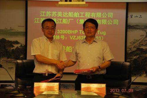 On July 9th 2013, the tug named MBP 3211 was successfully delivered to Jiangsu SUMEC Marine Co. Ltd. It is the third vessel in the lot of 3200BHP that Zhenjiang Shipyard builds for SUMEC. Mr Xu Gang, general manager of SUMEC attended the signing ceremony.