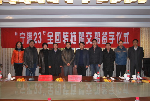 Vice president Ge Hongjun and engineering and technology department director Lu jianhua from Nanjing Port (Group) Co., Ltd. and Guan Fei, Party secrectary from Nanjing Tug and Barge Company attended the delivery signing ceremony in Zhenjiang Shipyard.