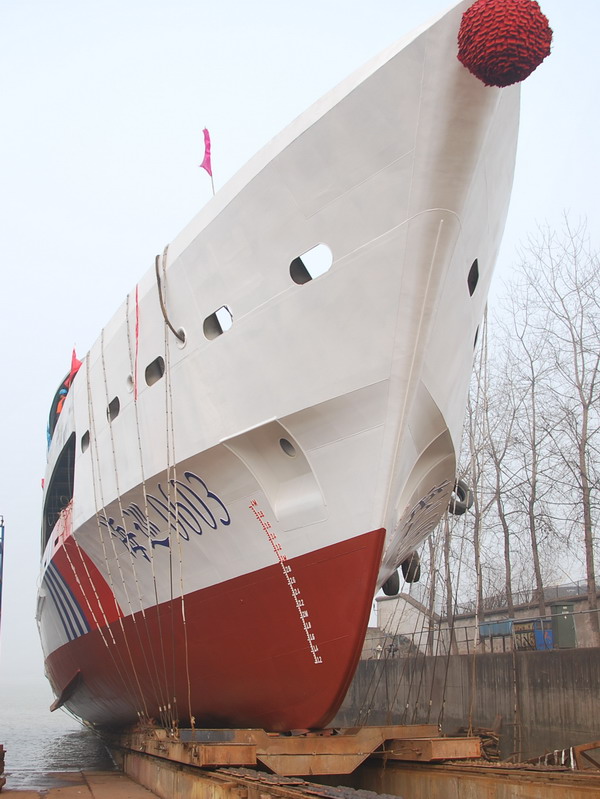 On the morning of 18th January 2014, the 60m integrated emergency guiding vessel, built for Zhenjiang Marine Safety Administration, was successfully launched in Zhenjiang Shipyard. |