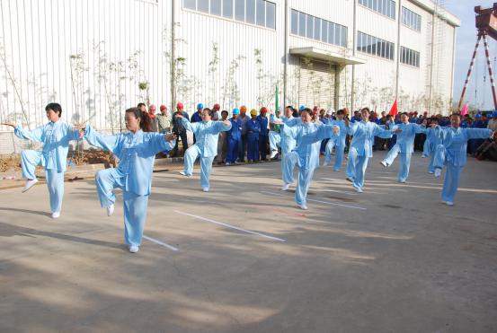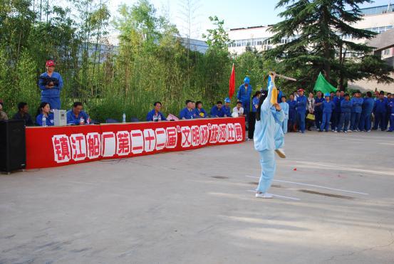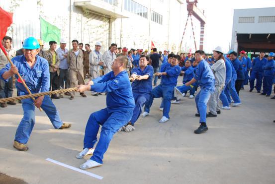 On the occasion of the 63th anniversary of Zhenjiang Shipyard, the company held a tug of war as a celebration on the afternoon of 23rd May. With the participation of 11 teams from the shipyard and other subcontractors, this celebration was held by the company’s Party Committee, Union and Youth League Committee. After fierce competition, the team from the machinery first workshop won the “Civilization Cup ” prize.Senior leaders attended the activity and honored the prize for the champion. Also, women workers performed Tai Ji during the competition intervals. |