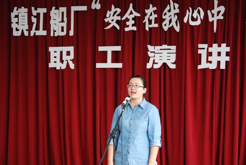 On the afternoon of 2nd July 2014, the speech contest named Safety in Heart-Excellent Safety Stories at My Side was successfully held by Labor Union, Youth League Committee and Safety Department in Zhenjiang Shipyard. The speech contest is one of the most important activities in shipyard’s Safety Production Months Campaign. 15 candidates from 9 Party branches attended the contest. After fierce competition, Zhu Liying from the first branch got the first prize. |