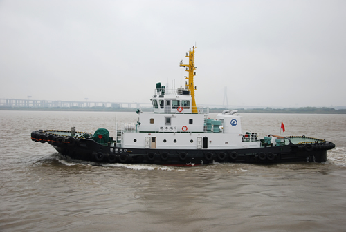 On the afternoon of 12th September 2014, the 4000HP ASD tugboat named Zhan Gangtuo 17 was successfully delivered to Zhan Jiang Port (Group) Co., Ltd from its building place Zhenjiang Shipyard (Group) Co., Ltd, starting its sail smoothly. |