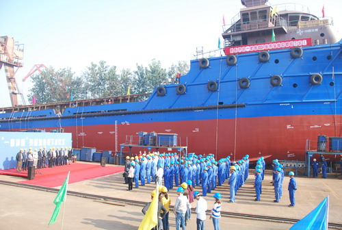 The tug is 68.6m in length (MLD), 15m in width (MLD) and 5.5m in draft. The continuous power rate of its main engine is 6570kw. Boasting a sailing speed of 14.5m, maximum continuous towing force of 11ooKN, two main generators, one stern propeller and a bow thruster, the tug also can be operated in unrestrictive area. The tug can be applied for the dispatch, oil-supply, water-supply and typhoon-resistant requirement of non-mainframe self-propeller engineering vessels. It is also a good assistant for other towing work and pulling in and off the shore of some big vessels. It complies with the CCS class notations as CSA Tug、Offshore Supply Ship、Ice Class B、FTP、PSPC(B)、CSM AUT-0.