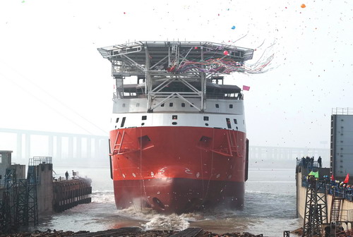 On the afternoon of February 16, 2015, another international advanced 85m maintenance workboat, built for foreign Owners, was successfully launched in Zhenjiang Shipyard.