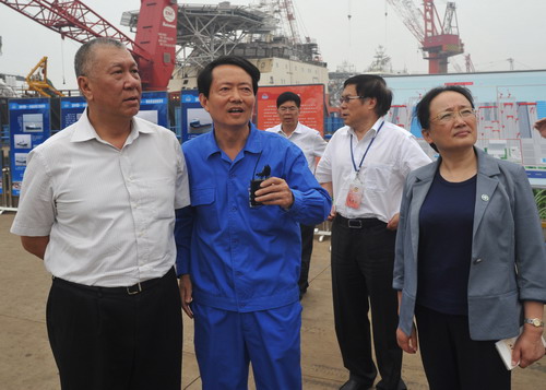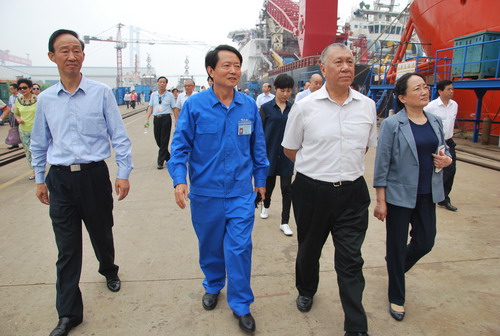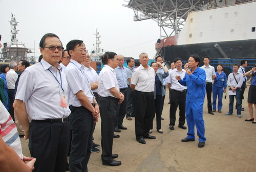 After hearing the report from shipyard chairman Mr. Guo Yan on the enterprise production situation, development plan, scientific and technologic advancement and some symbolic products, they went to the workshop and visited the all-electric driven PSV and Asia-first LNG single-powered ASD vessels. Mr. He Houhua highly praised shipyard’s upgrade strategy, scientific and technologic innovation, different competition, displacement development and improvement in core, competitiveness.