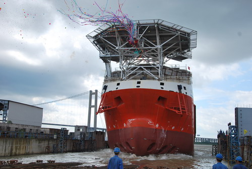 On the afternoon of August 11,2015, another international advanced 85m maintenance workboat, built for foreign Owners, was successfully launched in Zhenjiang Shipyard. |