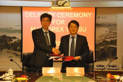 In the afternoon of 26th April, 2016, the 11000DWT self- unloading Coal Carrier “KOREX YEOSU” built for Korea Shipowner was delivered successfully that was five days earlier than contract period , starting its sail smoothly.