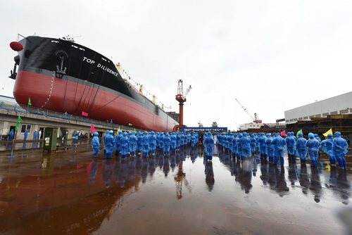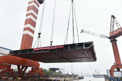 On morning of May 5th, 2018, the third “Sea camel”48500DWT cargo vessel, which is paid by Top-sheen Shipping Co., Ltd and financed by SUMEC, was successfully launched. On afternoon of same day, the fourth “Sea camel”48500DWT cargo vessel was keel laid to berth assembly. |