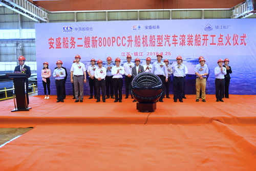 In the morning of September 25th 2018,two new 800PCC car ro-ro ships we built for Shanghai Ansheng Automotive Shipping Co.,Ltd. Got steel cutting. |