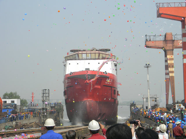 我廠為中國石化集團(tuán)上海海洋石油局建造的76米海洋平臺多用途工作船“勘探311”于2011年5月6日上午順利下水。 |