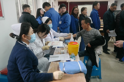 近日,公司黨委組織職工開展了“無償獻血、拯救生命”獻血活動。共有來自生產(chǎn)一線、科室管理職工,以及外協(xié)施工隊作業(yè)人員近100人自愿參加了獻血。鎮(zhèn)江市中心血站的醫(yī)務(wù)工作人員到企業(yè)現(xiàn)場進行采血。 |